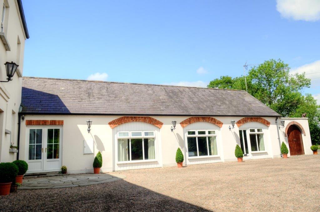 This property is well laid out and beautifully presented. The building is an interesting creation following the classical farm dwellings of the turn of 18th century. Generously wooded, this is a quiet rural location, 6 minutes drive from the M1 motorway, 80 minutes from Dublin Airport and 30 minutes from Belfast Airport.